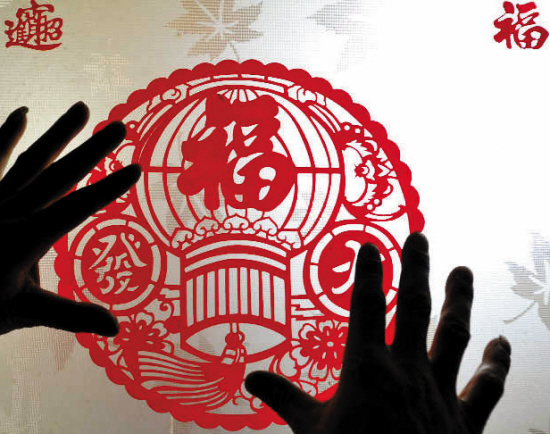 在汉族民间人们还喜欢在窗户上贴上各种剪纸——窗花。窗花不仅烘托了喜庆的节日气氛,也集装饰性、欣赏性和实用性于一体。剪纸在我国是一种很普及的汉族民间艺术,千百年来深受人们的喜爱,因它大多是贴在窗户上的,所以也被称其为“窗花”。窗花以其特有的概括和夸张手法将吉事祥物、美好愿望表现得淋漓尽致,将节日装点得红火富丽。