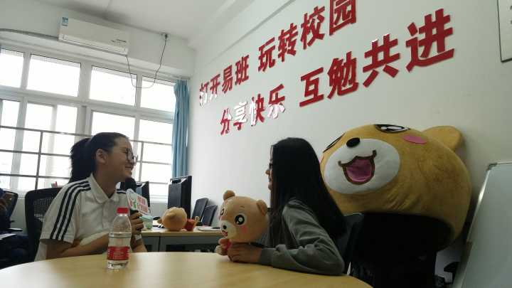 眼前坐着的女孩梳着高高的马尾,黑框眼镜,笑容甜美。她,就是我校易班工作站的站长康亚菲同学。