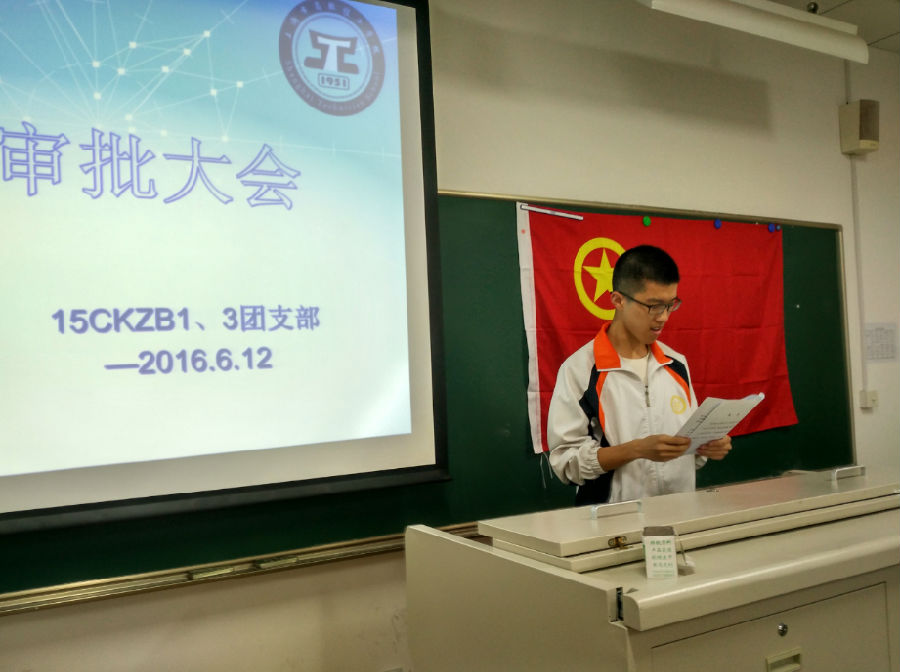 为了发展入团积极分子,并为共青团注入新鲜血液,上海市高级技工学校15CKZB13班团支部于2016年6月12日开展了关于发展入团积极积极分子的审批大会。15CKZB13班20名团员,2名入团积极分子参加会议。