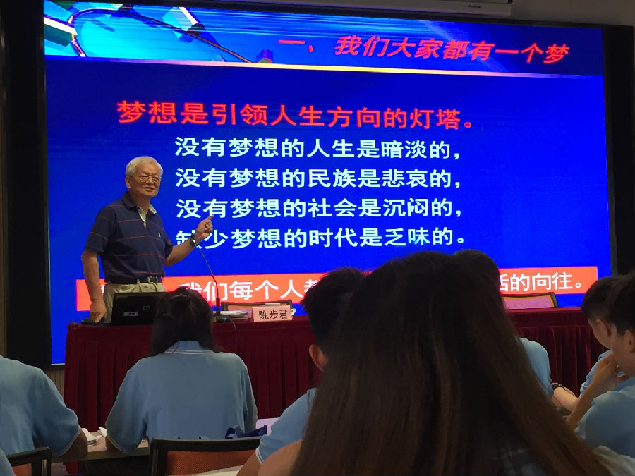 陈步君老师问道:“你们的理想是什么?”同学们就自己的专业回答了陈老师,不过都是职业理想。陈老师告诉我们,理想分为职业理想、生活理想、社会理想和道德理想。我们不仅要有职业理想,也要有生活和社会上的理想,更要有道德理想。陈老师之所以询问我们的理想,是因为有怎样的青年就有怎样的梦想,就有怎样的中国。习近平总书记高度重视共青团和青少年工作,针对青年的成长成才问题发表了一系列重要讲话,为动员青年助力中国梦指明了方向并提供了鲜明的行动路线。在实现中国梦的伟大征途中,青年一代一定要掌好中国特色社会主义理想信念的梦之舵,练就过硬的本领铸就梦之体,荡起艰苦奋斗的梦之桨,扬起创新创造的梦之帆,坚定不移地沿着正确的中国道路不断奋进。如今,我们中国正处于建党95周年的好日子,距离中国梦的第一个阶段仍有5年的时间,仍有5年的时间来全面建成小康社会。