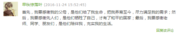 以下10名同学的留言被评为最“特别”感言,可获得螺旋笔记本一本: