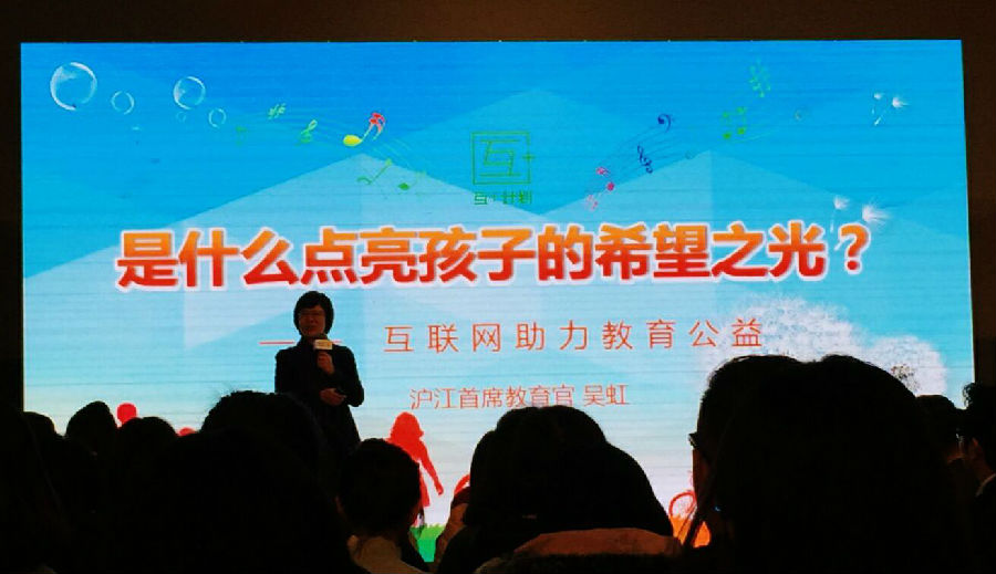 沪江首席教育官吴虹女士随后表示,种子计划是公益创业的结晶,也是有梦大学生们的福音。她回忆起自己的创业之路,在公立学校执教26年,担任校长17年,在沪江发起的互+计划中,充分利用沪江网络资源平台,改善边远地区学校教学资源与师资匮乏的现状,缩小城乡间教育的差距。这期间历经困难,但她乐于挑战。因为她始终相信,教育决定未来。