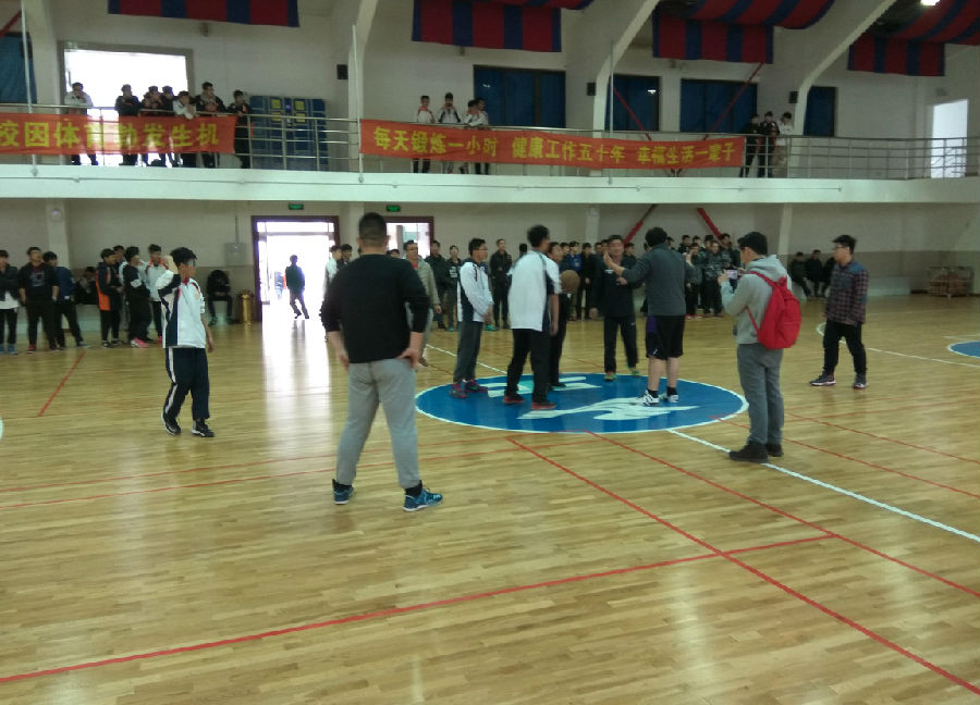 抽签完并举行一场篮球友谊对抗赛,一个个拿出了自己的真实本领,而且整个赛场洋溢着欢声笑语,更体现了我们活动的趣味性,让大家在欢乐中得到锻炼。整个赛场上各班没有参赛的同学也为本班的选手加油喝彩,项目不是一个人在完成,也不是只有参赛者在完成,而是整个班级,整个团队。赛场上口号无比响亮,掌声此起彼伏,热闹非凡!