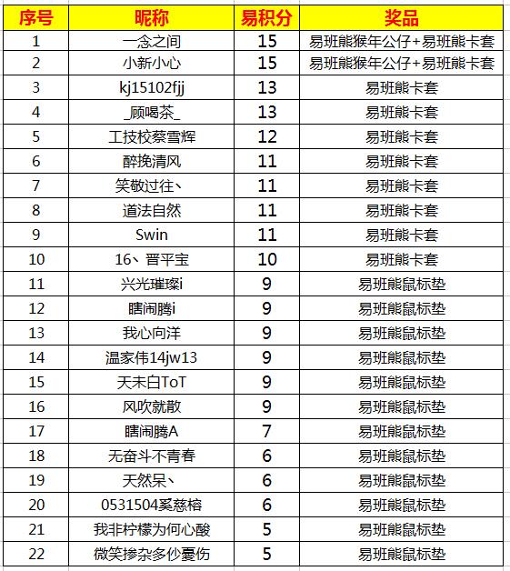 让我们为他们的青春欢呼,向他们的青春致敬!即日起至527日,凡参与本次版块联合活动,易积分排名前三即可获得易班熊猴年公仔,前十可获得易班熊卡套,更有50个易班熊鼠标垫随机附送。