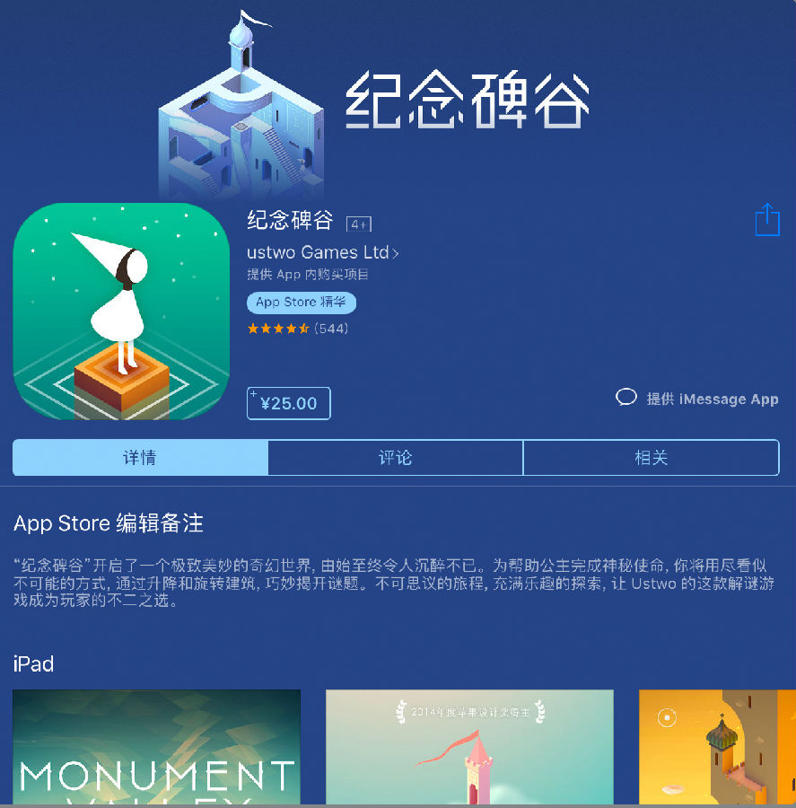 这是一款探索解谜类的游戏。游戏通过视角的转换,视线的错觉,用看似不可能的方式巧妙地解开谜题。游戏画风十分精良,每张截图都可以当作手机壁纸来使用。