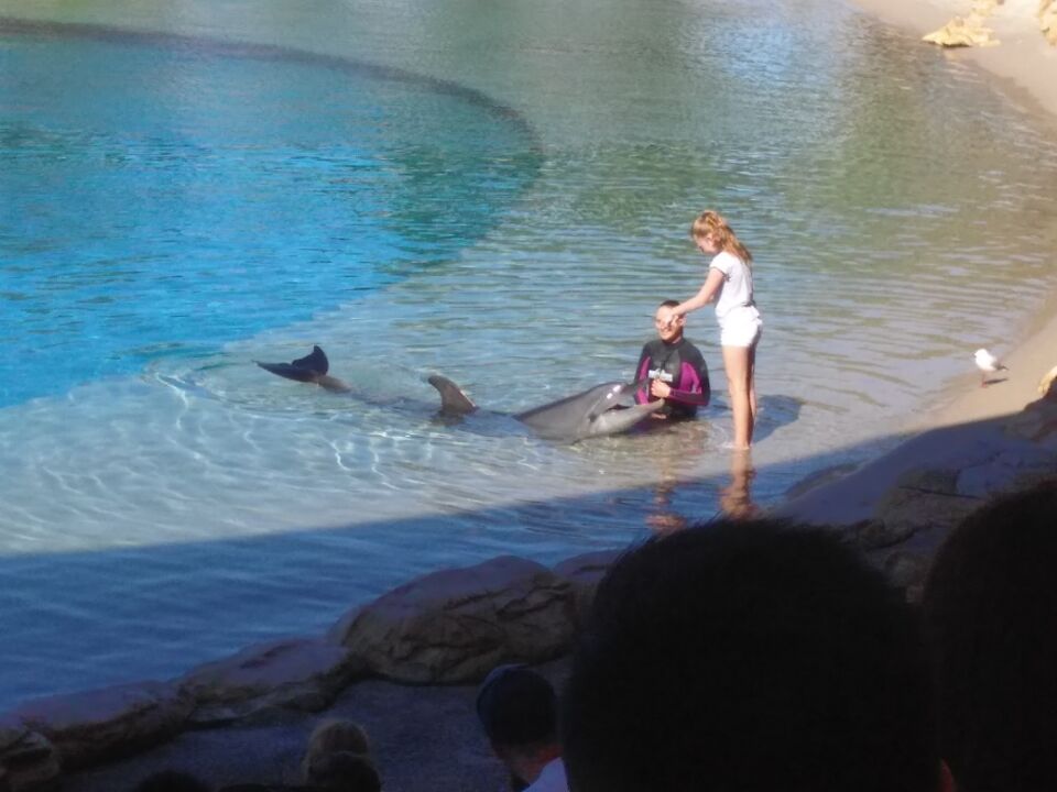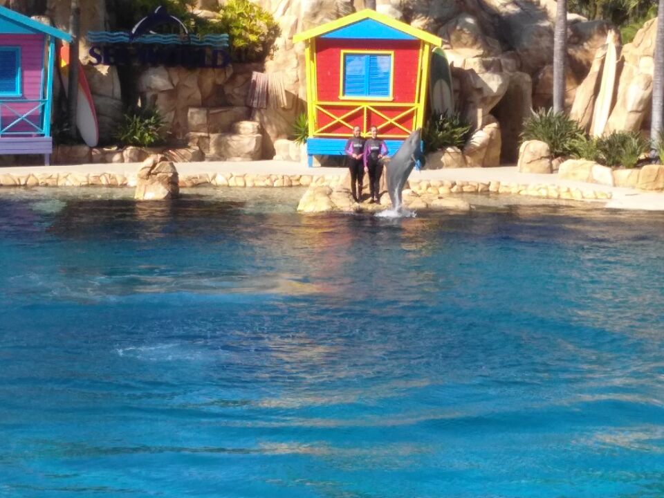 机缘巧合之下,我们还赶上了海豚表演。海豚表演也是这的一大特色,表演的开场是三只海豚突然从水中窜出,让小编眼前一亮。海豚与驯养员在水中共舞,充分体现了人与动物之间友谊。