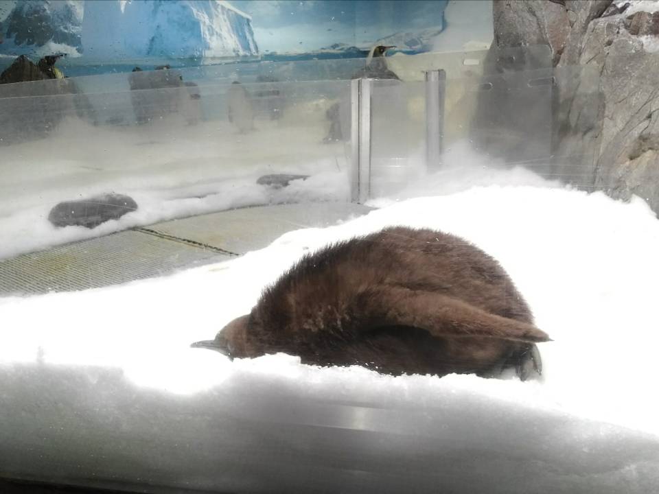 小编第一个来到的展馆——企鹅馆。展馆一共分为两层。在第一层你能看到企鹅在水中愉快嬉戏。顺着楼梯来到二层,二层是一个模拟冰山的平台,有许多企鹅聚集在上面。在旁还有两只叫不上名,体型肥嘟嘟的企鹅,小编差点抑制不住捋毛的冲动。