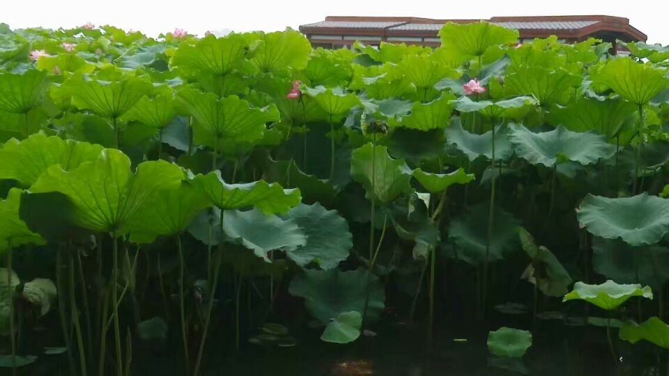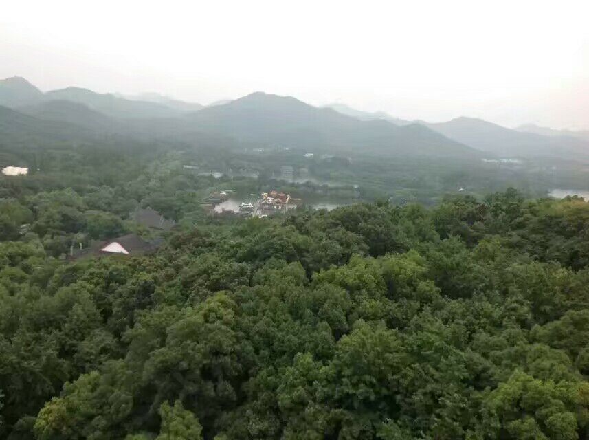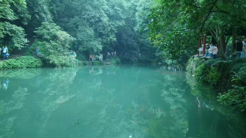 (灵隐寺外微波倒影,置身于翠绿色的一片)