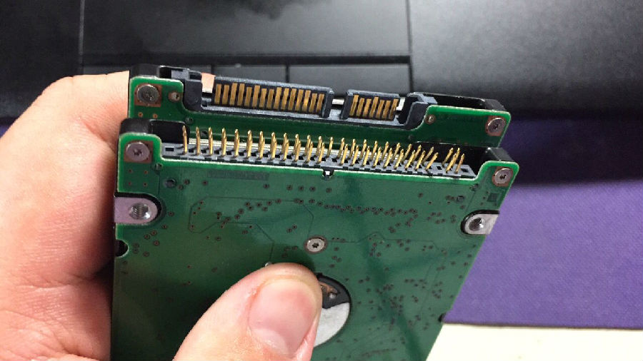 在你准备更换硬盘之前,小编我先来科普一下硬盘的接口以及尺寸、转速等知识,现在市场上较为常见的硬盘接口都为SATA(串口),外观为两排同一平面上的金色的触点,还有一种古老的接口为PATA(并口),外观为两排平行的插针,其中会有一针被故意拔去。来来来,上图!