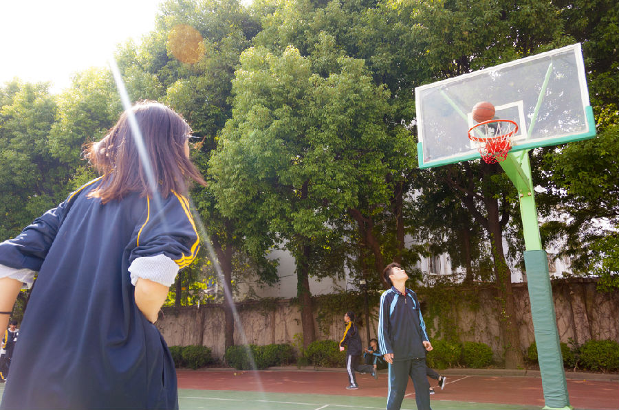 这是定点投篮活动,参加活动的同学围绕篮筐前的半圈投篮,无论是男生还是女生都踊跃参加了这项活动,看来这届新生也是辈有才人出啊。