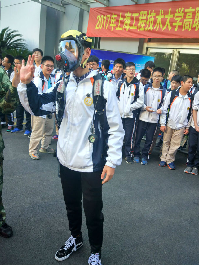 本次演习由上海市高级技工学校与消防大队联合组织,本校所有学生参与。