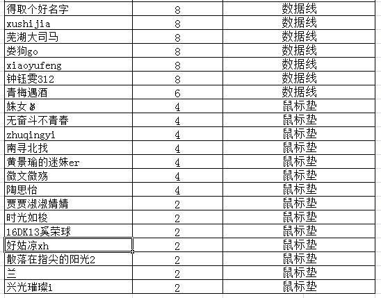 恭喜以下同学获得实物奖品