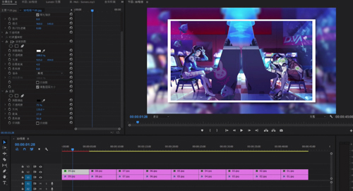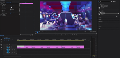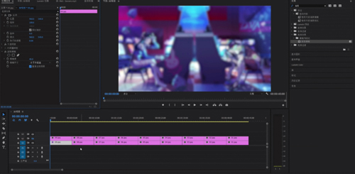 设置完成之后,我们接下来一步就是将v1轨道内的素材全部复制一层到v2。接下来我们先将v2的可视窗口关闭,先看v1的素材,我们选中第一段素材,在效果菜单内找到高斯模糊,将效果拖入素材,在效果控件窗口,将模糊度调制成40%左右(这边只是给一个建议,具体可以按照大家的需求去更改)同时勾选重复边缘像素,将轮廓的黑边去除。