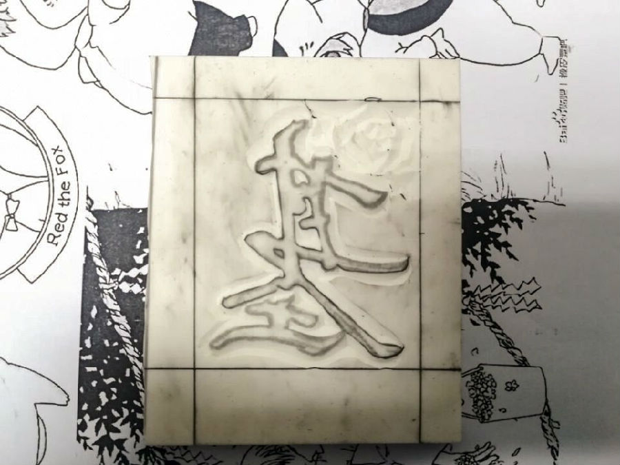 来到橡皮章社,发现大家都很努力,每一个人在刻的时候都是很认真,很细致的,毕竟是要用刀的细致活,需要一个人的耐心和认真。而反观小编刻的章,虽然我选的图案在众多图案中还算简单,但还是刻得坑坑洼洼的,简直惨不忍睹,有些需要留白的地方也被刻掉了。小编的同学一直在橡皮章社学习这次自然当成了我的小老师。她也有耐心的去教我怎么刻搓衣板,怎么去留白说到这里,我感觉自愧不如,如果我之前没有放弃刻章的话,也许我现在也小有成就了。