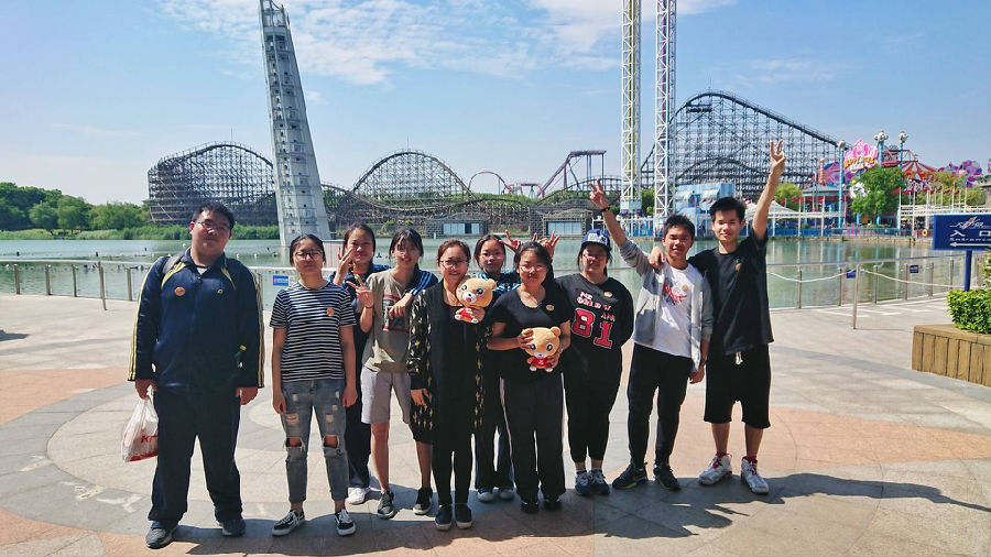 欢乐谷的确如他的口号一样,把欢乐带给了大家。下午两点,活动已经接近尾声,各班师生们在欢乐谷正门集合,依次留影,准备发车返校。