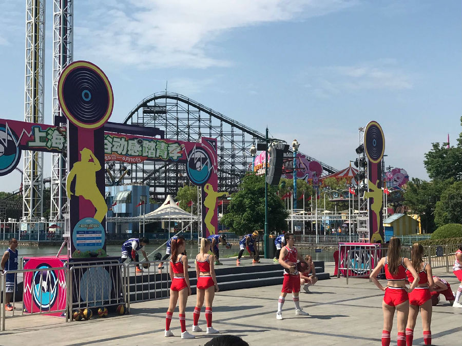 欢乐谷独具特色的巡场表演也吸引了不少同学的围观,他们跟随着音乐的节奏轻轻摇动身子,在最后一个音符落下后,为在舞台上舞动的女团喝彩。