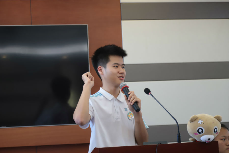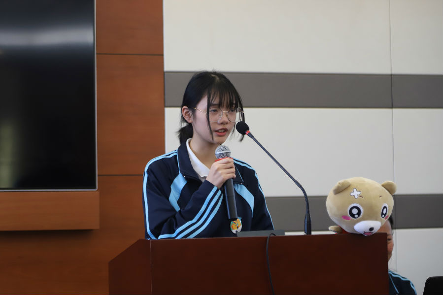 虞琳老师的发言过后,是各个部门的部长对于各自部门的详细介绍,他们为同学们详细介绍了,各自的部门在易班工作站中的发挥的作用,以及其日常工作内容和范畴。在此期间,工作站内人员所扮成的易班吉祥物,易班熊来到会场,与台下台上的同学们进行亲密互动,带动起欢快的气氛,配合部长别有趣味的演讲将气氛推到高潮。