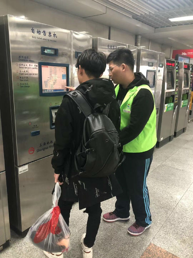 中国国际进口博览会于2018年11月5日在位于上海的国家会展中心揭幕。这是世界上首个以进口为主题的国家级博览会。为配合进博会的举办,弘扬上海城市文明,发扬我校志愿精神,我校团委老师荆鲁带领四名学生于11月9号下午两点,在宝山区一号线呼兰路地铁站,开展志愿服务。