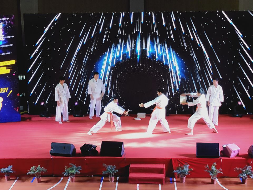 第四个是由中华职业学校带来的空手道表演,浩瀚气势,矫健的姿态,体现出中职生的风采