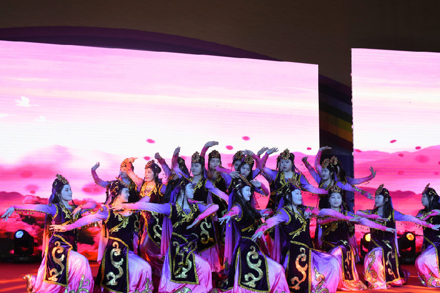 奉贤中等专业学校的新疆舞《花儿》刚刚开始,一股异域风扑面而来,让人联想到新疆的“葡萄美酒夜光杯,欲饮琵琶马上催”
