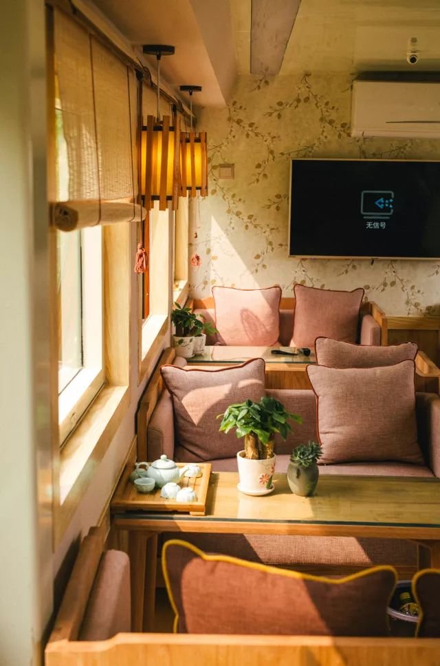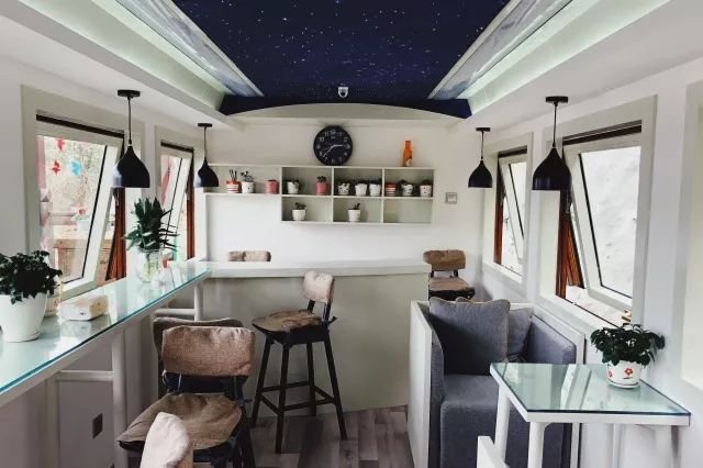 列车一共三个车厢,分别布置成不同风格,颜值都很高。