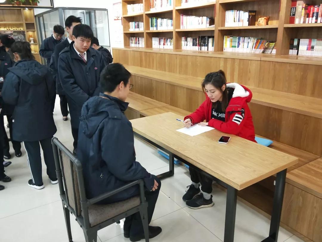 图书馆内,同学们都已着正装排成“长龙”了,里面是我们“红色传承”志愿者服务队的招新,大家都有备而来迎接面试,经过重重考虑及打分最终选出同学光荣加入志愿者服务队。随即便参加了下午的红色传承志愿者服务队的换届仪式。