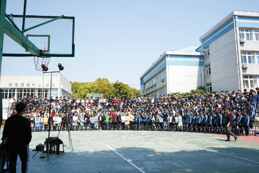 老师指导着各个班级的毕业生们排队依次站上铁架,熙熙攘攘的学生紧挨在一起,人头攒动。摄影师调试好相机,指挥好学生的位置,随着各位老师的入座,相机伴随着学生齐声呐喊的茄子“咔擦”一声落下了帷幕。