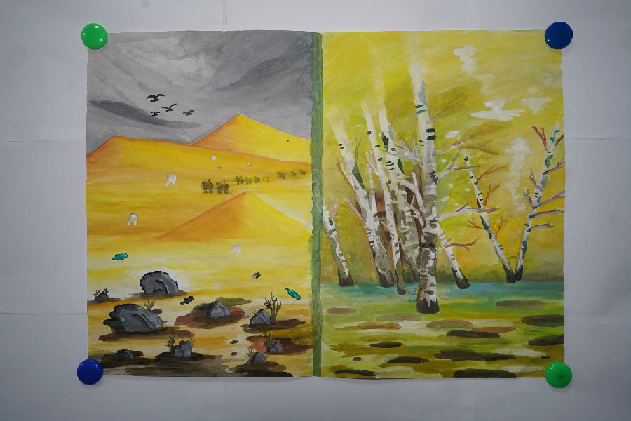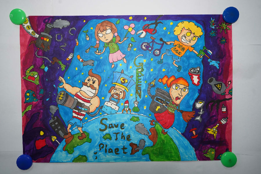 作品介绍:以水彩画的形式涂抹出环保