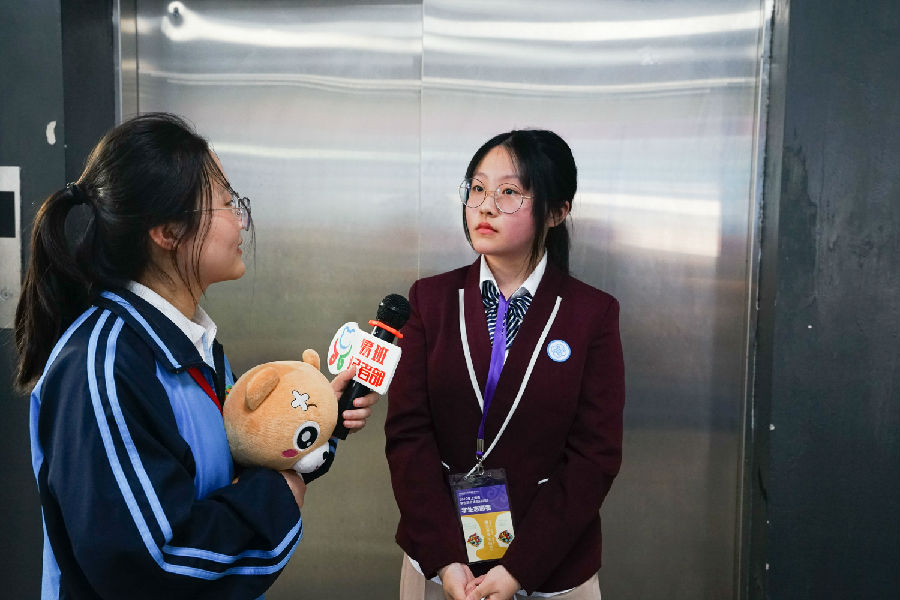 来自1703班的薛雯静同学,已经是第二次担任学生志愿者。在工作中的闲暇时间里,她同我们简单的谈了谈自己参与活动的感受。