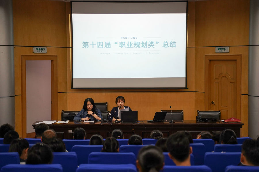 第四个环节则是第十四届“职业生涯规划类”获奖师生代表经验分享。一共有四位老师和一位学生代表向我们分享经验。其中几位老师都提到的几点是:紧扣主题、紧扣教材、紧扣时代。在内容上重视作品立意、重视整体架构、重视精雕细琢、重视团队协作。原则是当作常规动作、借鉴往届经验、提升审美志趣。