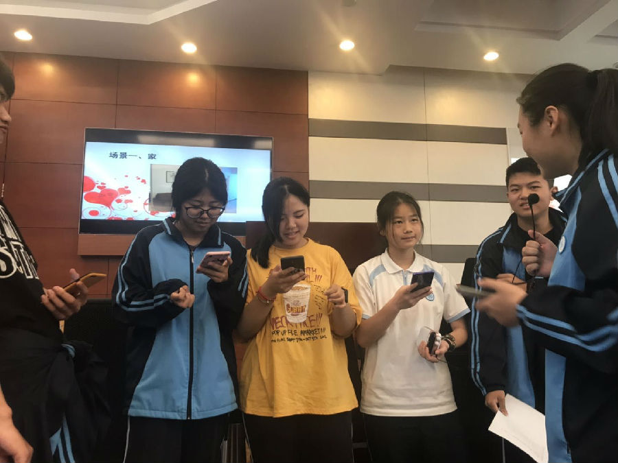 在看完视频之后,老师与学生展开表演环节,由三组同学表演,一组是模仿在学校的环境,一组是模仿在家庭中,另外一组则是模仿在公共场所中,三组都选出一名同学扮演一名进步青年表演如何在身边吸毒人员劝吸的情况下坚守原则,抵制好奇心和诱惑的故事。