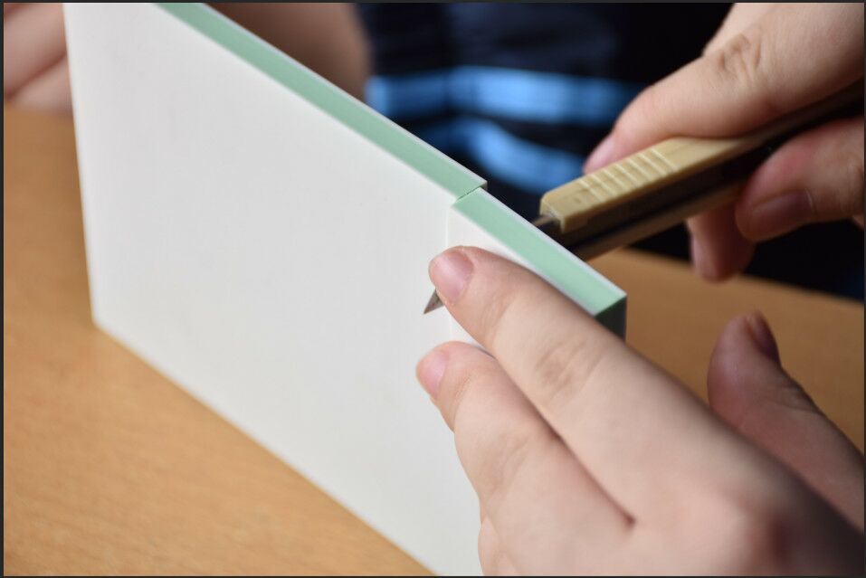 当我坐下来以后,来了一位制章社的同学站到我的旁边来。她向我递过来了一块橡皮砖和一把长的像笔一样的小刀,她告诉我这把刀就叫笔刀。接着她又递过来一些用油墨打印在A4纸上的图案,她叫我挑选个素材来制作橡皮章,这些图案有文字也有动漫人物或者是一些卡通画。当然,作为新手我选择了一个简单的图案,“猫”字来作为我刻章的素材。