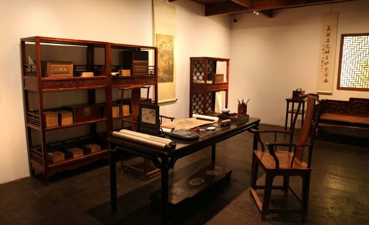 三楼展厅设有中国历代书法馆和绘画馆。数百卷历代名人的书法佳作,画笔笔墨各异,神韵颇丰。画展中,他们欣赏到了宋、元、明、清等朝代的名画。郑板桥的竹石图轴,王冕的梅花图轴,王羲之的圣教序图册等,每一幅字画背后的故事都能让他们浮想联翩。