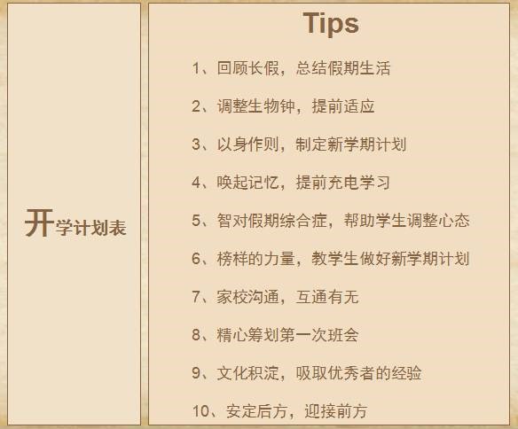 首先要准备好的主要还是同学们的心理,因为每次放长假都不会那么快的适应开学。而且开学前几天已经可以开始预习课本了,回忆下上学期所学习的知识,重新开动下许久未动的大脑。