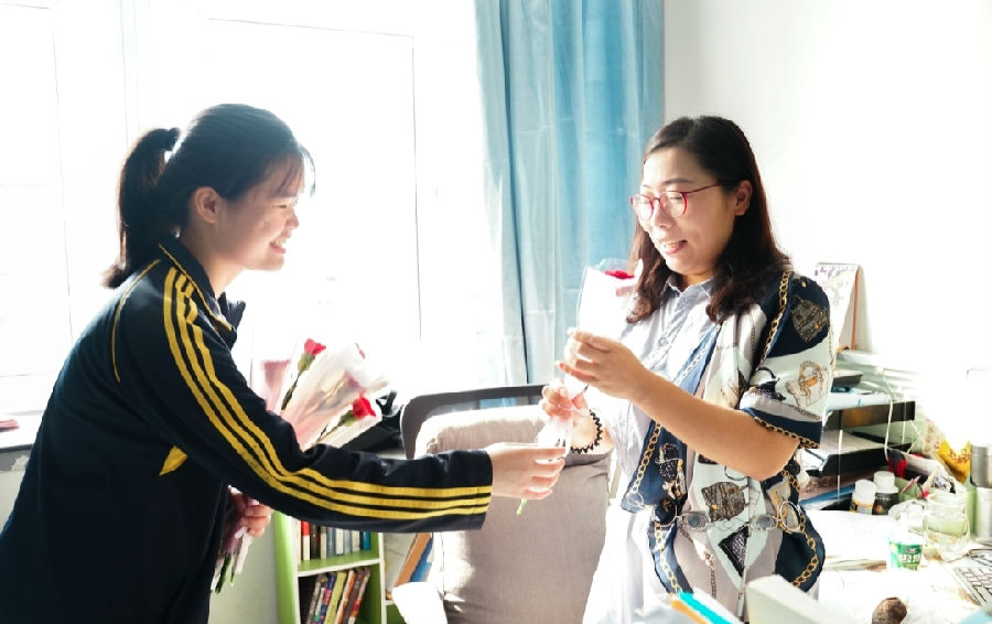 2019年9月10日我校开展了教师节主题活动,我校易班工作站的四名骨干成员在相关老师的带领下,在9月10日清晨,依次向学生科科长孙老师献上了代表着感恩与祝福的康乃馨。
