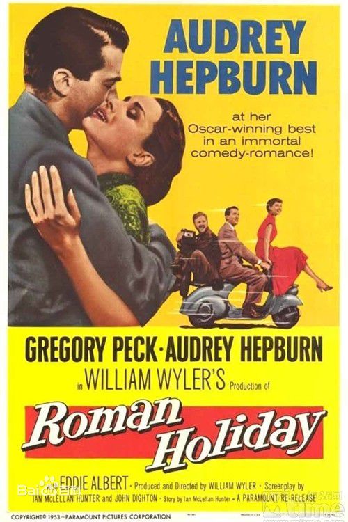 《罗马假日》(Roman Holiday)是1953年由美国派拉蒙公司拍摄的浪漫爱情片,故事讲述了一位欧洲某公国的公主与一个美国记者之间在意大利罗马一天之内发生的浪漫故事。影片由格利高里·派克和奥黛丽·赫本联袂主演,取得了巨大的成功,成为好莱坞黑白电影的经典之作。奥黛丽·赫本也因该片获得了奥斯卡最佳女主角奖。