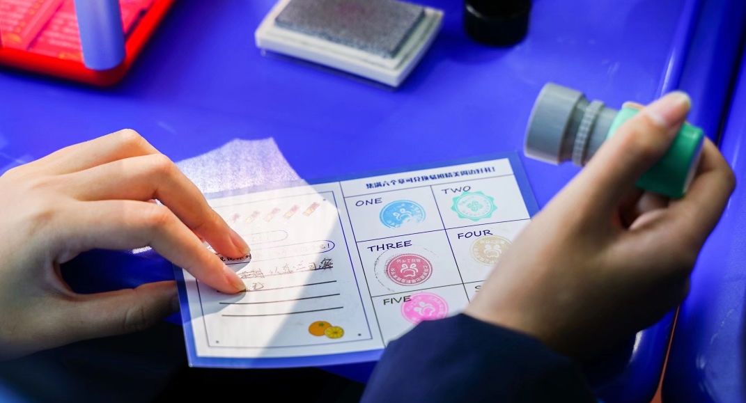在图书馆前“游戏镖靶”游戏,被学生称为最难游戏。每人三次机会,站在距离粘板五米的地方投球分数累积到十分,即为过关。在游戏进行中,不少同学因为用力过猛飞镖常常超出距离靶子有一段距离的地方。这时,多数学生会选择把自己丢到远处的飞镖拾回来,不想麻烦工作人员。为此,对于这些学生当场就给予适当的表扬,以及感谢。希望他们以后也能保持这一份“初心”。