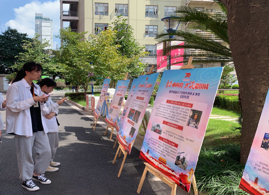 通过展板的展示,让我们回到历史的过去,重新体验那漫漫长夜中星光点点……70年风雨兼程,艰苦奋斗。汗水染绿神州,青春永驻华夏。“恰同学少年,风华正茂,书生意气,挥斥方遒”。我们是新时代的接班人,是清荷学子的主旋律,我们将砥砺前行让爱国精神流淌在每一位清荷学子的血脉之中。