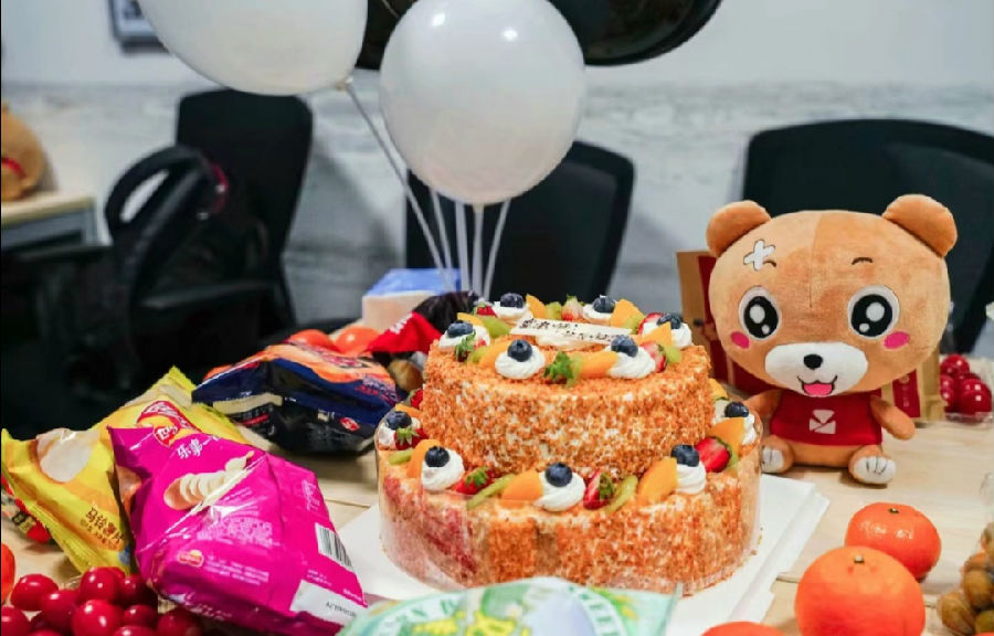 虞老师从办公室来到易班工作站门前。“咚咚”的敲门声,敲开了易班工作站的门,敲开了易班人的心,随着门的打开,音乐,歌声,祝福,礼炮,欢呼一一迎面而来。在星星灯的闪耀下,虞老师带着治愈般的微笑许下了心愿。在欢笑声和祝福声中切下了一块块蛋糕。在吃饱喝足后,大家像是许久未见的老友,坐在椅子上吃着瓜子,聊着近日所发生的事情。