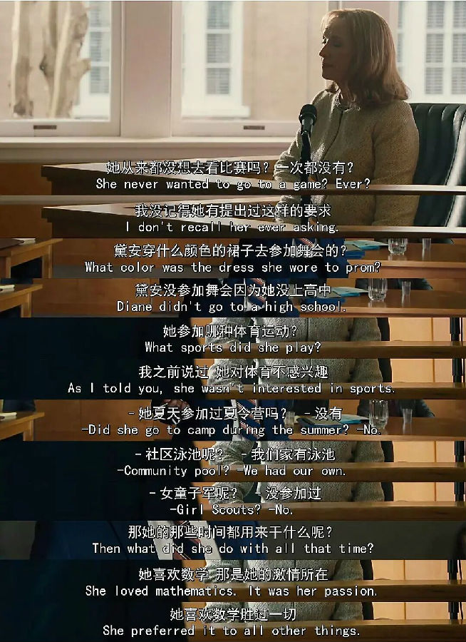 Frank为了重新获得玛丽的监护权,他告诉他母亲:姐姐戴安破解了那个方程式,但是选择在她死后公布。这对他的母亲来说极具讽刺。对于她最想获得的东西确实用自己女儿的生命换来的。或者她母亲根本就不知道自己的这种专横的行为已经让自己的亲身女儿失去了生命,面对自己的外孙女的时候,还想重复自己女儿当初的老路吗?