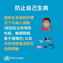 2.避免前往动物农场和屠宰场、活禽动物交易市场或摊位、野生动物栖息地或等场所。必须前往时要做好防护,尤其是职业暴露人群。