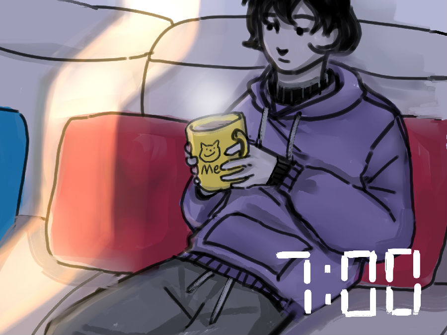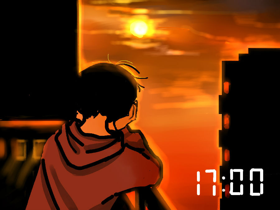 也许你经历过这类事情:躺在床上睡到傍晚,哦,睡得头疼,工作还没做完,肚中空空,家务还没有做,屋子里空荡荡的,这真是糟糕的一天。怀着烦闷的心情走到阳台边,天空中一抹橘红色吸引着目光;楼下的小孩子们看起来很开心;猫猫在草丛里穿梭;风吹得缓慢轻柔;几只鸽子沐浴在橘红色中绕着楼房飞;楼下飘上来一股炒菜的味道;下水管道响个不停;妈妈喊自家孩子回家吃饭的声音;街道和马路上在此刻看起来很热闹,暖橘色中来来往往的是归家的人们。各种各样的声音与事物传入脑中,突然想喝点热可可,突然觉得今天过得也没有那么糟糕,心中的烦闷被取代为一种平静的感觉。待夕阳缓缓下落直至天空被青蓝色和淡紫替代,夜晚来临。