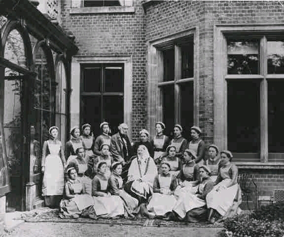 南丁格尔的名字取自她的出生地,她生于佛罗伦萨的一个英国上流社会家庭。心地善良的她一直很照顾穷人。1854年,英、法及土耳其联军与沙俄交战于克里米亚,克里米亚战争爆发。由于没有护士且医疗条件恶劣,英国的士兵死亡率高达42%。南丁格尔主动请缨。每晚,南丁格尔都手执风灯巡视,伤病员们亲切地称她为「提灯女神」。战争结束后,南丁格尔回到英国,被人们推崇为民族英雄。1860年,南丁格尔用政府奖励的4000多英镑,在英国圣马医院里创建了世界上第一所正规的护士学校。随后,她又创办助产士及经济贫困的医院护士学校,被人们誉为现代护理教育的奠基人。