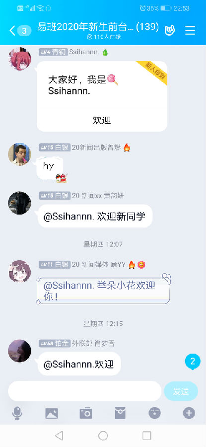 群内由大部分人一开始都沉默不语到后来聊的热火朝天,看的出大家对新校园生活的期待。