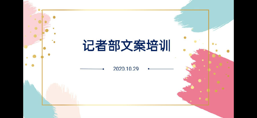 曜灵当空,昤昽映脸,暖洋洋。2020年10月29号中午十二点二十分,培训准时举行。什么是通讯稿?对于来说初入茅庐的新成员们来讲这无疑是一种陌生的文体。本次培训也是新成员们第一次正式接受工作培训,正统地学习通讯稿这一文体形式。