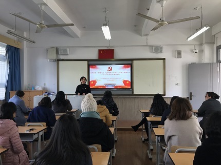 2021年1月15日上午,上海市南湖职校第一党支部的全体党员集中在6301教室开展2020年的第一次主题党日活动,共同学习习总书记2021新年贺词的内容。