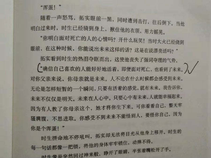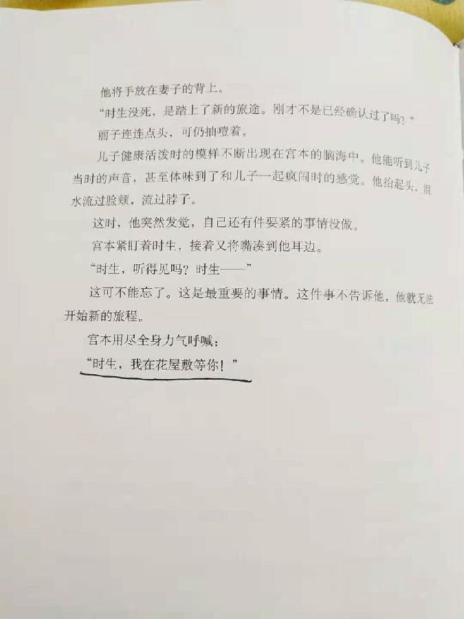 “能与你在一起,我就感到很幸福,在与这个世界相遇之前,我就这么想。与现在的你相遇之前,我就非常幸福了,我觉得能生到这个世界真好。”这是时生最后与二十多岁的拓实说的那些话。