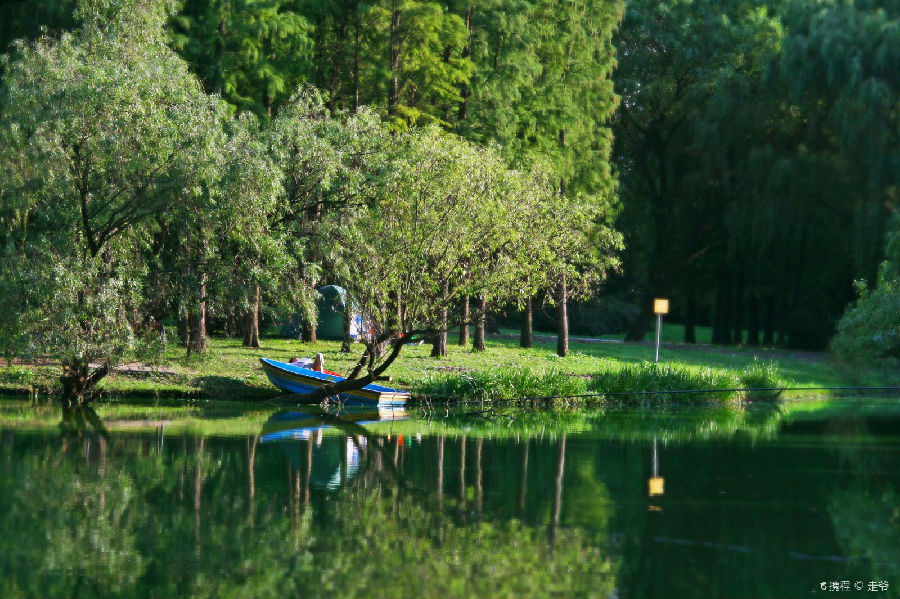 从左手边往里走,有专门的烧烤野营区和跑马场,周末和节假日时烧烤区相当火爆,继续往公园深处,有人工湖泊,可以划船泛舟,也可以坐一次滑索从湖上滑到对岸,再往公园最里面走环境十分安静,特别适合像今天那么好的天气来这里散步。