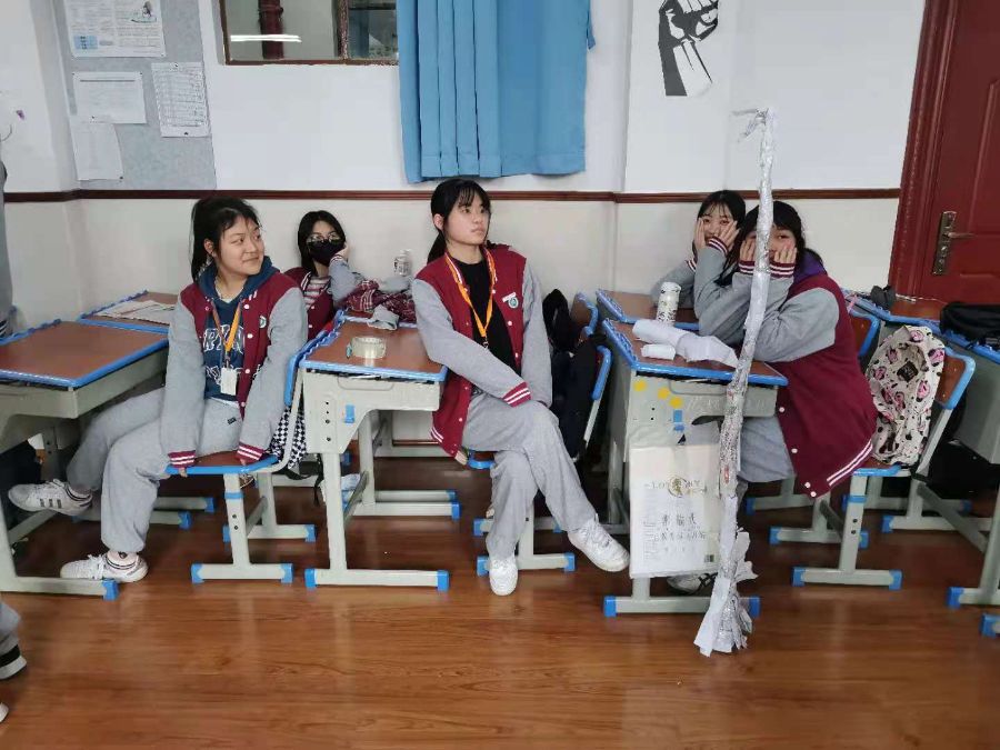 在开始时,大家都干劲满满、信心十足,但是过了一段时间问题就出来了:人手不够、材料不足、意见不同等等问题接踵而至。但是好在,在大家的努力下,大家还是完成了纸塔的搭建。