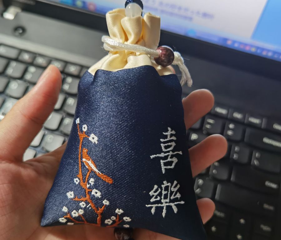 得到了门卫的准许后,我冲上再熟悉不过的楼梯,来到班主任的办公室,久违的见面后,我将刚买的伴手礼放在了她的办公桌上,并互相寒暄了几句,突然班主任想起了我此行的目的,转过身去将放在最内里的大包裹拿了出来,拉开袋子,一股熟令人安心的药香味扑面而来,她对我说道:“你在这些里面随便挑吧!”我在堆得像小山似的香囊中翻找了一番后,拿出了我最喜欢的一个。